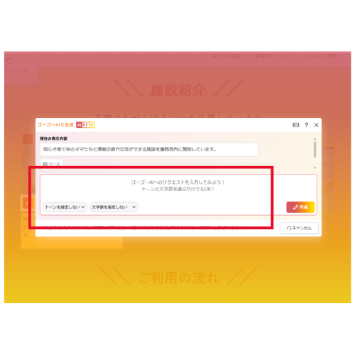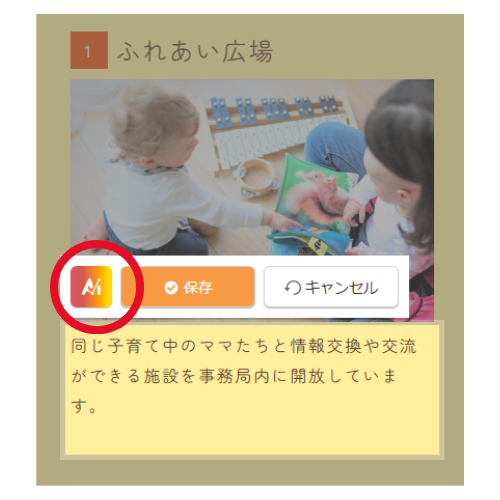 ページ内のテキスト編集画面でも、AIを利用して文章の作成や改善が可能です。