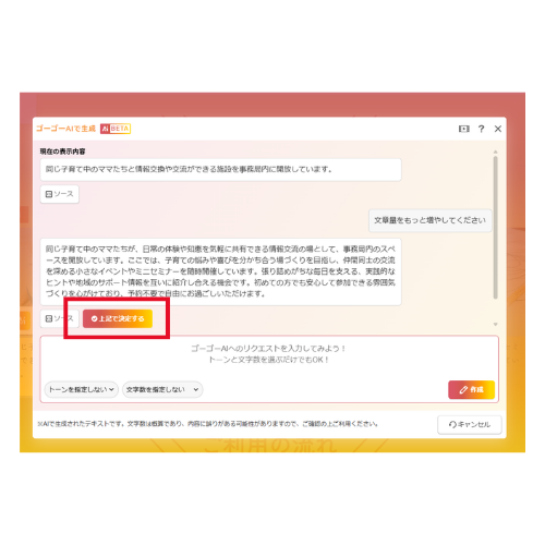 文章が編集内容に反映されます。必要に応じて微調整し、保存してください。